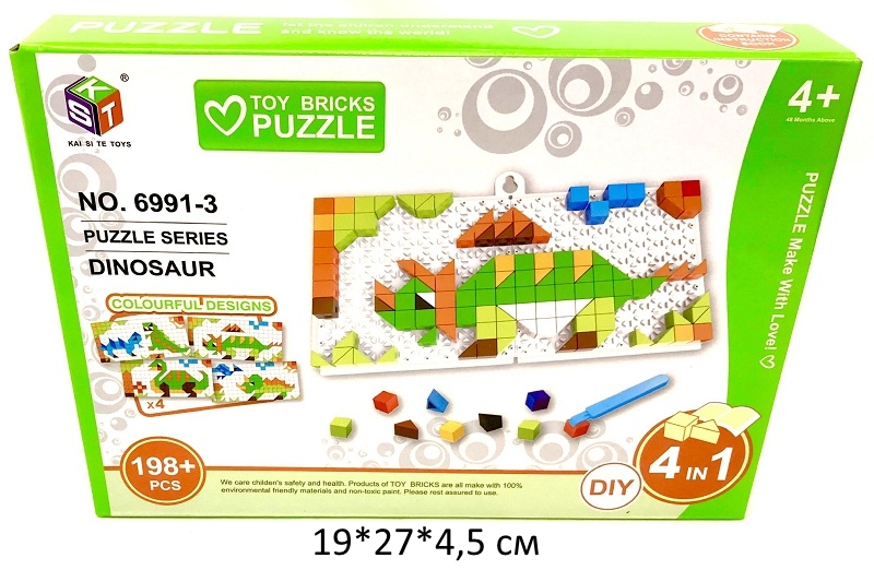 Мозаика арт. 6991-3 "Динозавр" 4 в 1, 198 дет. в кор._/96 шт./