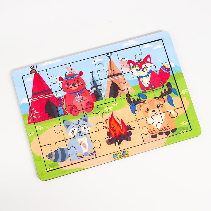 - Деревянный пазл арт. ДВП 005 "Индейцы" 24 детали×Деревянный пазл арт. ДВП 005 "Индейцы" 24 деталиВ комплект входит деревянная рамка, 24 детали пазла. Чтобы части изображений было легко доставать, в рамке предусмотрена выемка для пальцев, а составные элементы свободно ложатся в рамку. Собирая яркие, красивые картинки, ребёнок познакомится с понятием "часть-целое", потренирует логическое и пространственное мышление, навыки мелкой моторики и зрительную память.