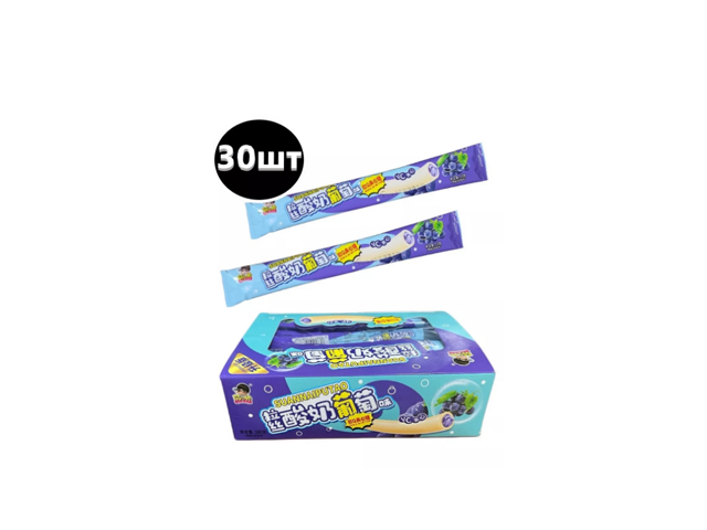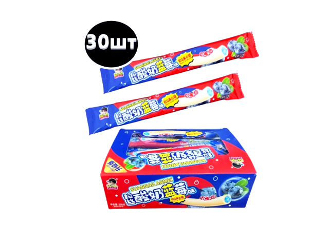 Конфета арт. 960090-3 Жевательная Трубочка-тянучка "Яблоко-черника" 12 г 30 шт в голубой кор.*