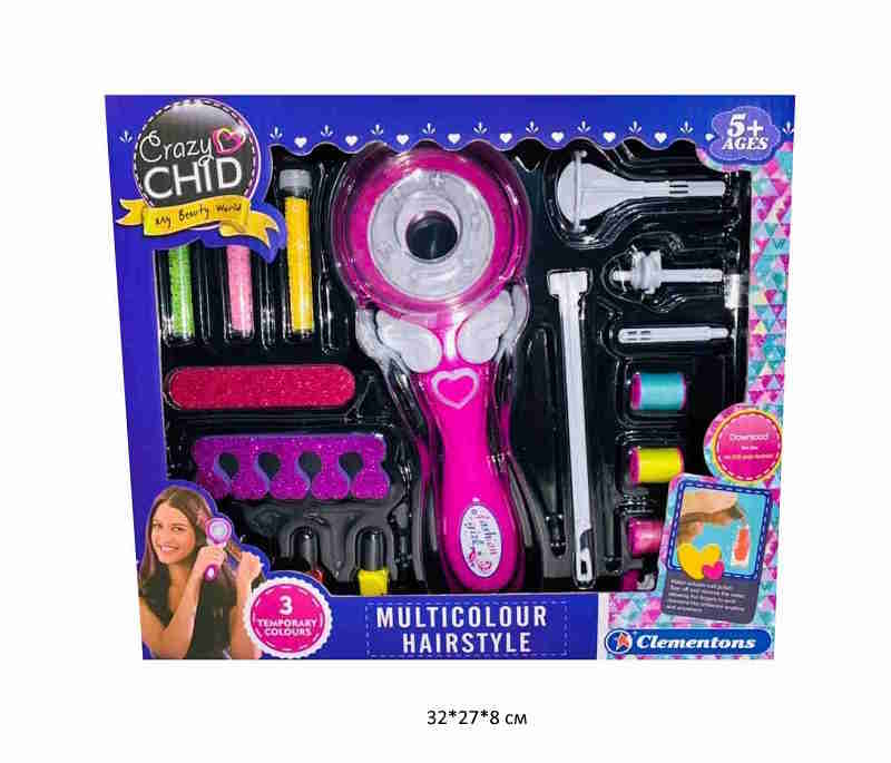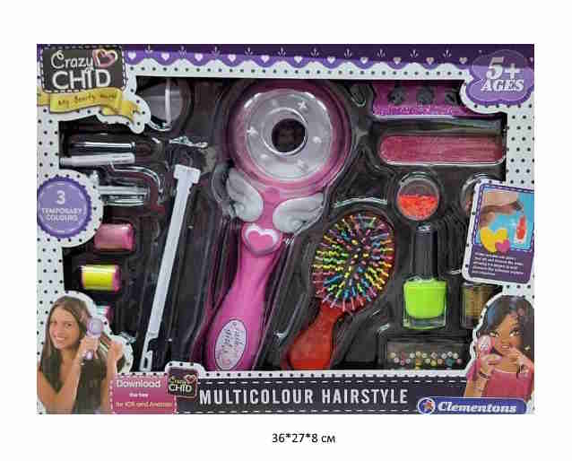 В набор входят: румяна, тени, лаки для ногтей, помады, кисточки, пилочка, разделитель для пальчиков, накладные ногти, наклейки.