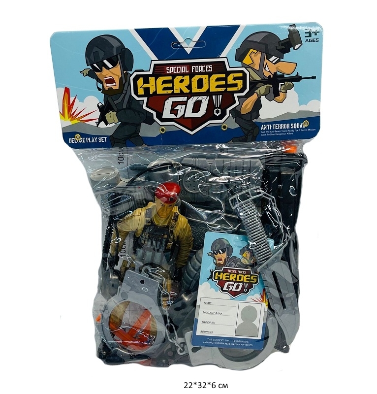 - Набор военного арт. 2022-38 В пакете 18,5*3,5*29,5×Набор военного арт. 2022-38 В пакете 18,5*3,5*29,5Игровой набор военного способен порадовать мальчиков, в наборе есть много аксессуаров для максимального погружения в образ.