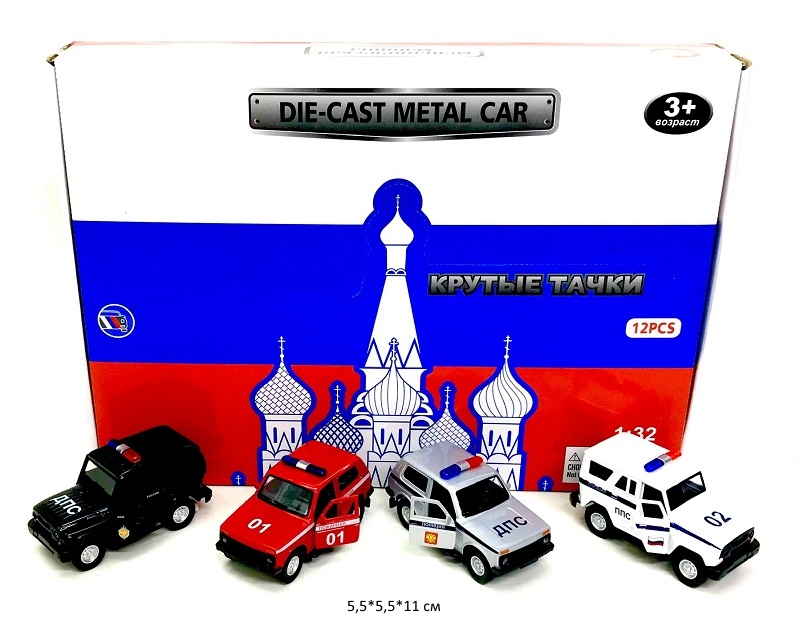 Модель металл. арт. 834-B6B УАЗ Пожарная, Полиция инерц. свет, звук (12 шт.) шоубокс_Цвета в ассортименте