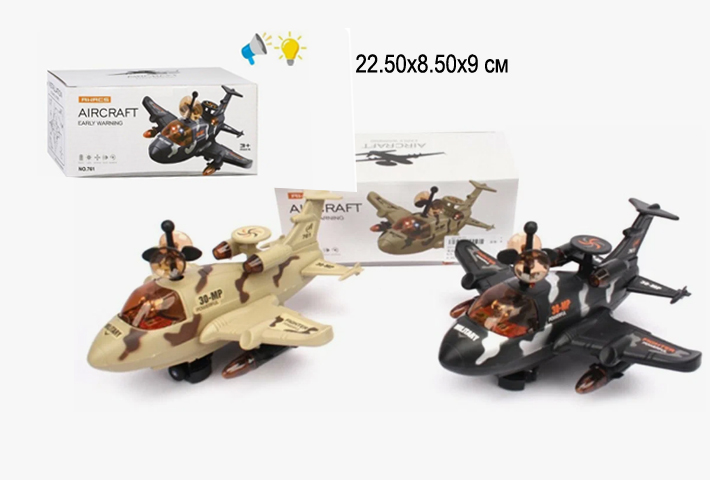 Самолет арт. 761 Военный цвета микс на батар. свет, звук, вращение в кор.=Самолет арт. 761 Военный цвета микс на батар. свет, звук, вращение в кор.=