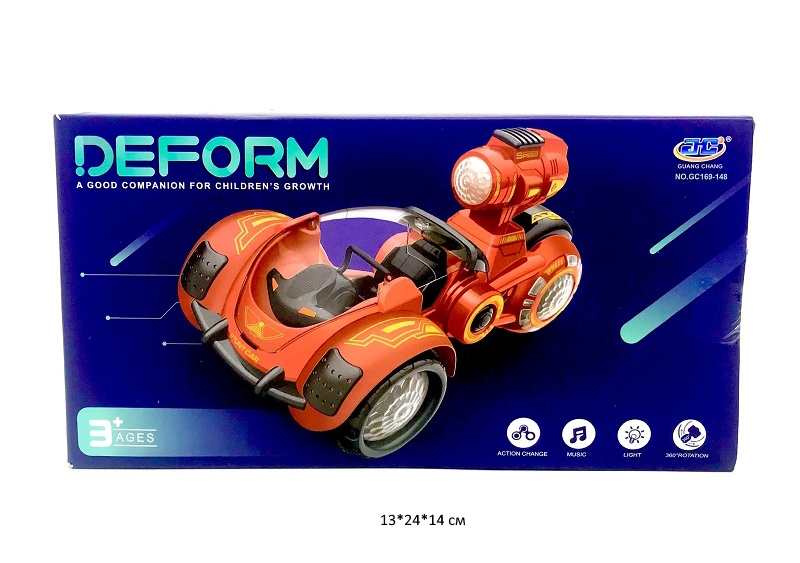 - Машина на батар. арт. 66103M Трансфор. в кор.(60шт./бл.30)*/×Машина на батар. арт. 66103M Трансфор. в кор.(60шт./бл.30)*/Модель 2 в 1 автоматически трансформируется из машины в робота и обратно. Игрушка работает на батарейках, у нее есть световые и увлекательные звуковые эффекты.