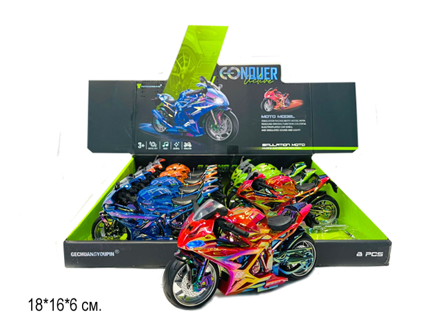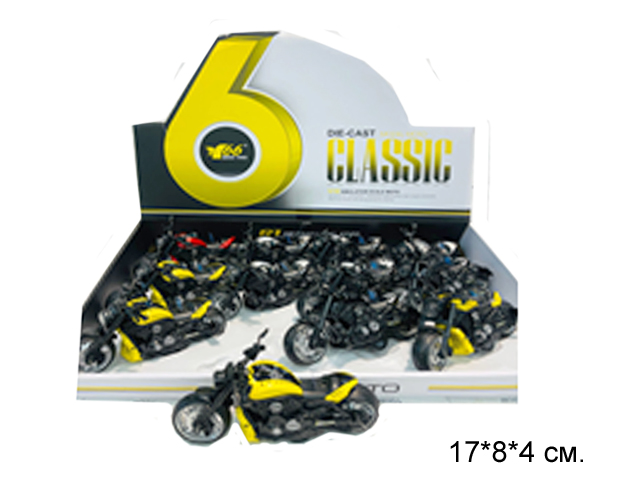 Мотоцикл инерц. арт. MY66-M2235 Металл (12 шт.) шоубокс•У модели есть инерционный механизм: оттяните игрушку назад и отпустите - мотоцикл умчится вперед, набирая скорость.