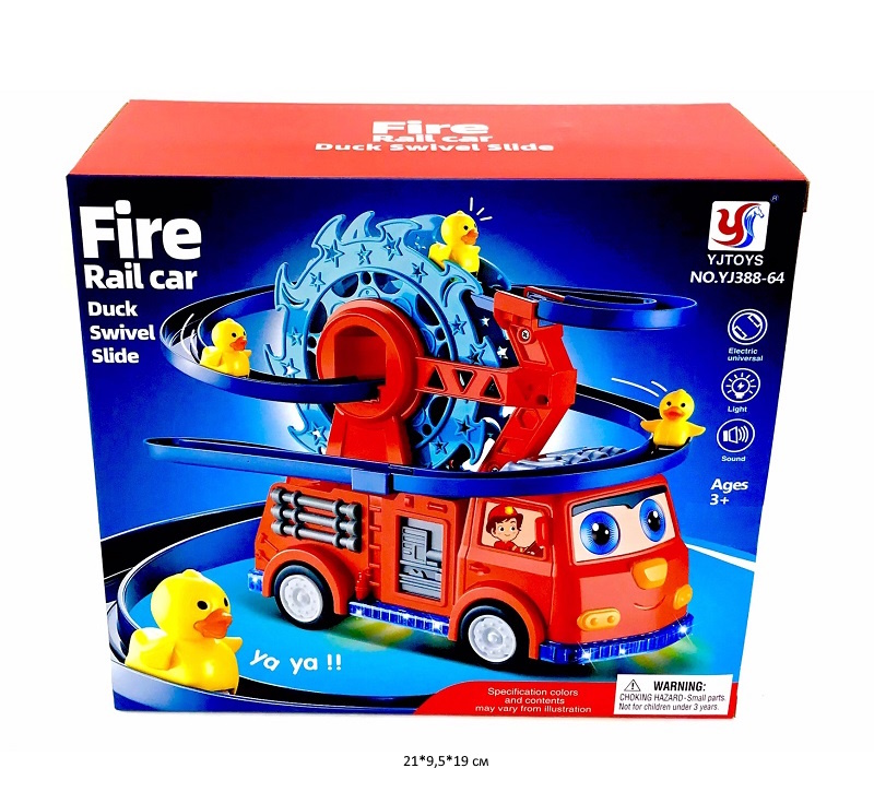 Машина на батар. арт. YJ388-64 Пожарная "Утиная карусель" свет, звук в кор._Машина на батар. арт. YJ388-64 Пожарная "Утиная карусель" свет, звук в кор._